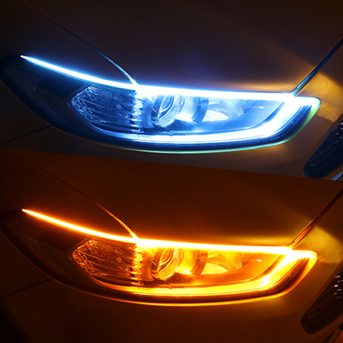 PUERXIN lampu LED DRL mobil, 2 buah/set lampu sein siang hari Universal fleksibel tahan air